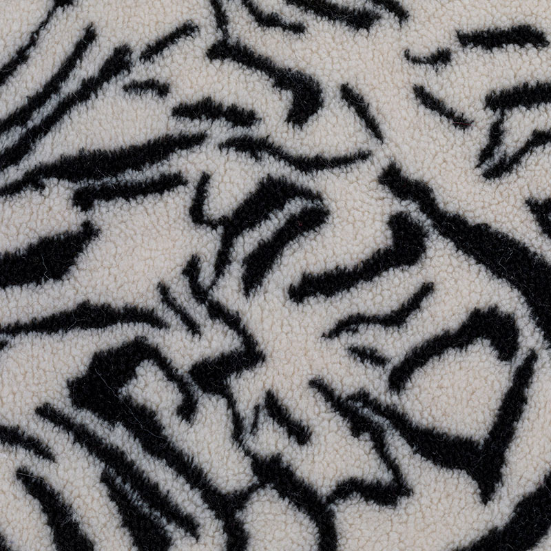 Jacquard faux lamb fur is a type of synthetic fur fabric that has a pattern woven into it using a Jacquard loom. The fabric is made to imitate the appearance and texture of real lamb fur, but without using any animal products.